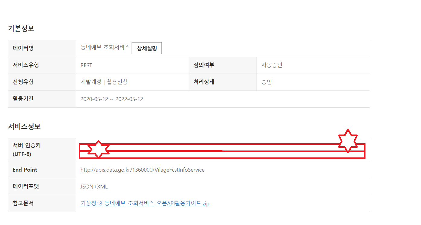 6.์ธ์ฆ๋ฐ์ ํค๋ฅผ ๋ฃ๊ณ ์กฐํ ํด๋ณด๊ธฐ!