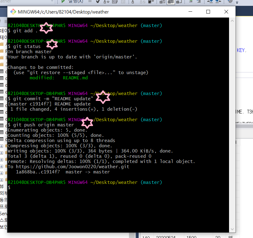 1. git add . (ํ์ผ ์คํ ์ด์ง์ ๋ํ๊ธฐ ( .์ add ํ์นธ ๋๊ณ .์ด์์!!))