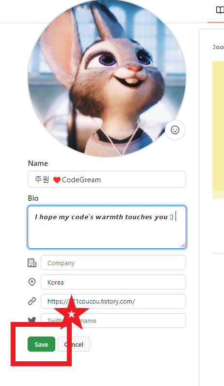 3. Bio ํ ์คํธ๋ฐ์ค ์์ ๋ด์ฉ์ ๋ฐ๊ฟ์ค๋๋ค.