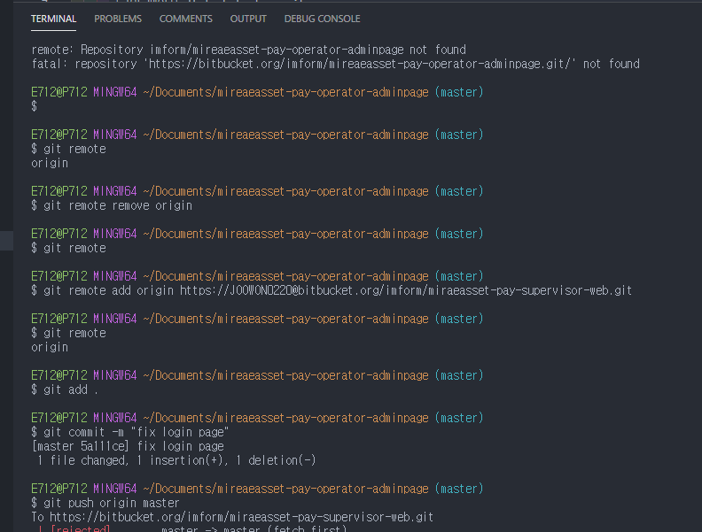 3. git remote add origin https://์๋ก์ด ๊น ์ฃผ์ ๋ฅผ ๋ถ์ฌ๋ฃ๊ธฐ ํด ์ค๋๋ค.