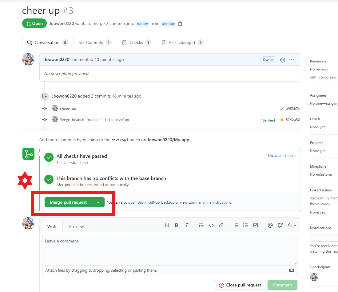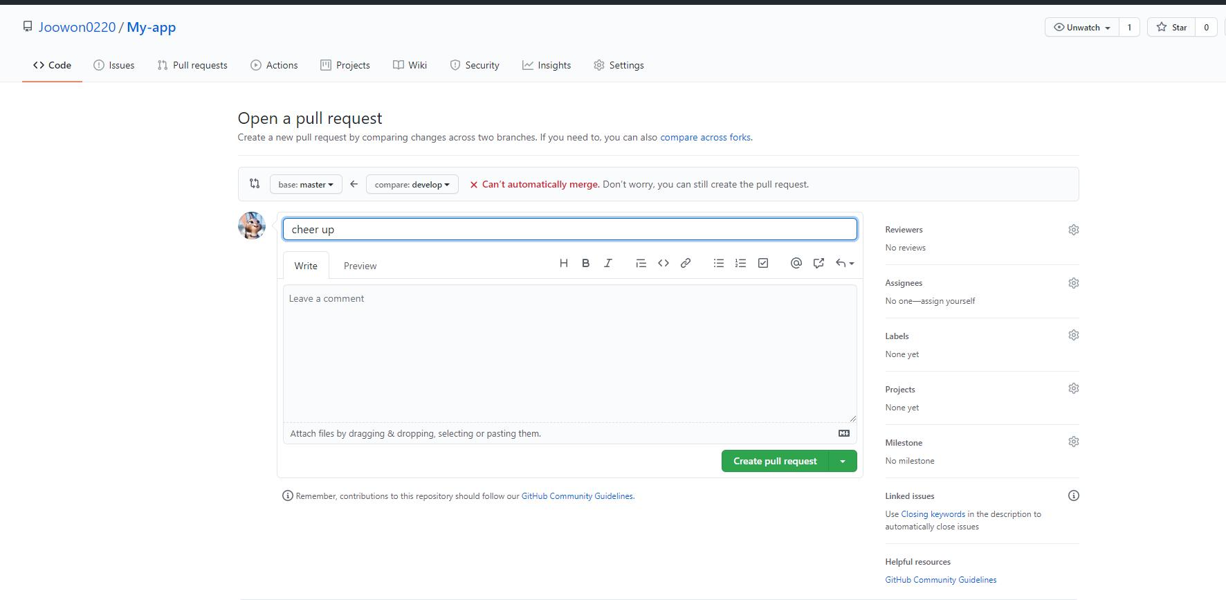create pull request ๋ น์๋ฒํผ์ ๋๋ฌ์ฃผ๋ฉด ๋ฉ๋๋ค.