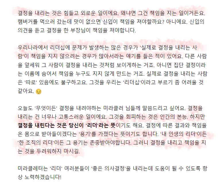 2. ๊ฐ๊ฐ์ ๋ด๋นํ ์ฌ๋์ ์์ฌ๊ฒฐ์ ํ๊ธฐ ์ ์ ์ง์ ํด์.