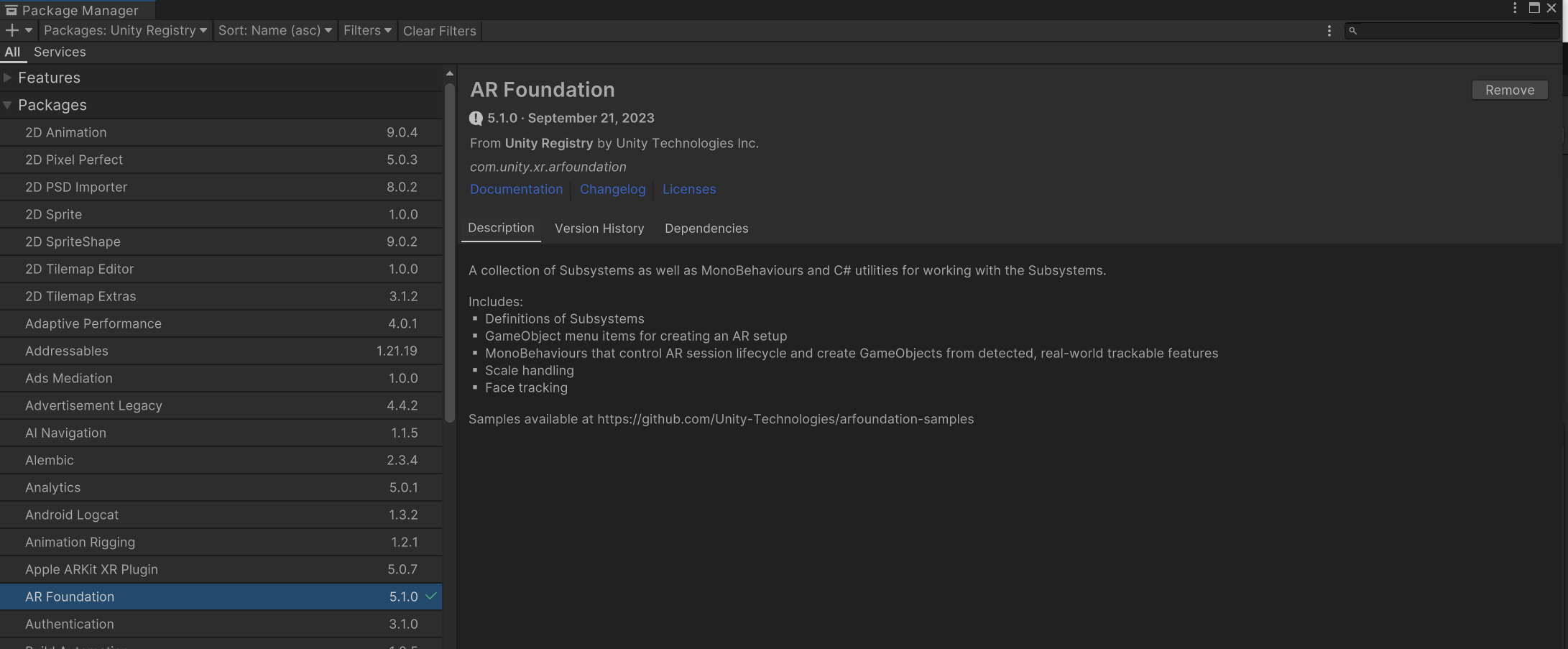 1-2. AR foundation ํจํค์ง ๋งค๋์ ๋ค์ด๋ก๋