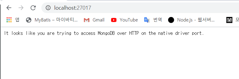 5. ๋ธ๋ผ์ฐ์ ์์ localhost:27017๋ก ์ ์ํ์ฌ ์ ์์ฐฝ์ ํ์ธํฉ๋๋ค.