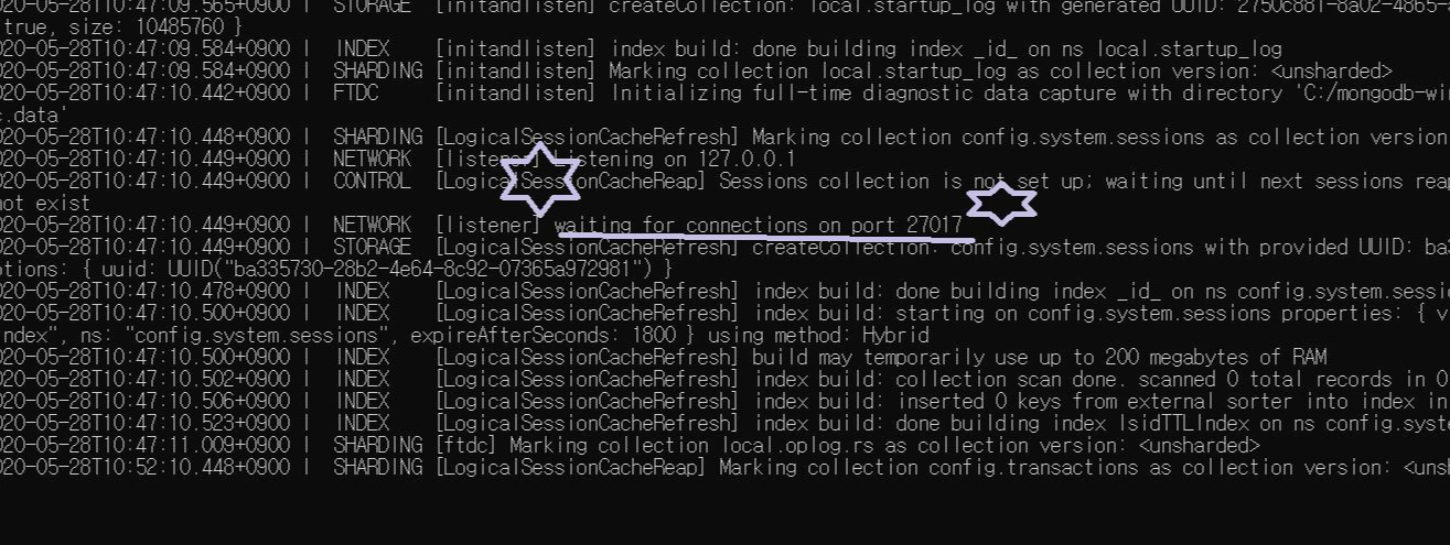 ์ด์ ๋ชฝ๊ณ DB๊ฐ localhost:27017์์ ์คํ์ค์ธ ๊ฒ์ ์ ์ ์์ด์.