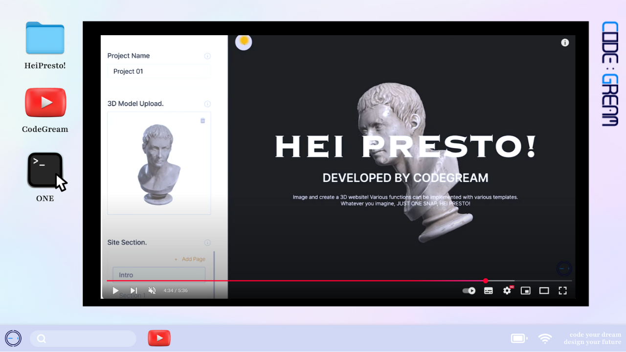 HEI PRESTO! Image and create a 3D website! Various functions can be implemented with various templates. Whatever you imagine, just one snap, HEI PRESTO! VIEW MORE BACK prop.mate klick happyhappymoo funplay codebridge layon shukran.korea lobcol pickypicker