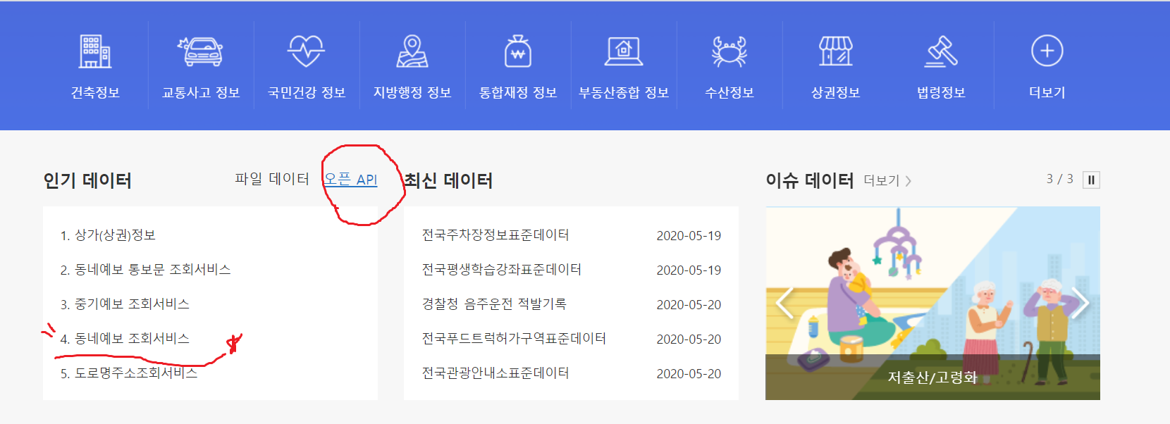 ๊ณต๊ณต๋ฐ์ดํฐ ํฌํธ ํ ์๋์ชฝ์ผ๋ก ์คํฌ๋กค์ ๋ด๋ฆฌ๋ฉด ์ธ๊ธฐ๋ฐ์ดํฐ์ ๋กํ๋ ๋๋ค์๋ณด ์กฐํ์๋น์ค๊ฐ ์๋๋ฐ์ฉ
