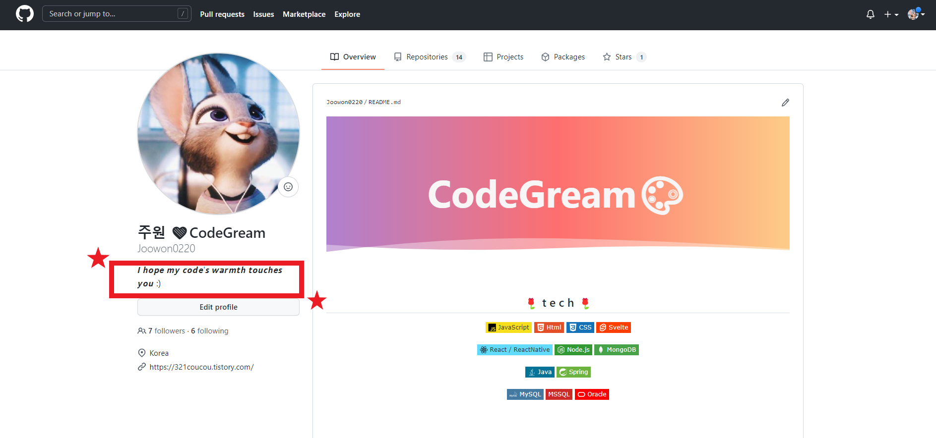 1. ์ฐ์ ๊นํ๋ธ ์๋จ ์ค๋ฅธ์ชฝ์ ์๋ ๋ณธ์ธ ํ๋กํ ๋งํฌ ํด๋ฆญ > Your profile๋ก ๋ค์ด๊ฐ๋๋ค.