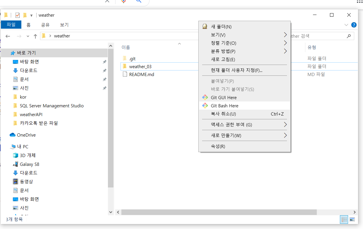 ์ ๋ก๋ ํ๋ ค๋ ํด๋์์ ๋ง์ฐ์ค ์ค๋ฅธ์ชฝ ํด๋ฆญ -> git bash here ํด๋ฆญ