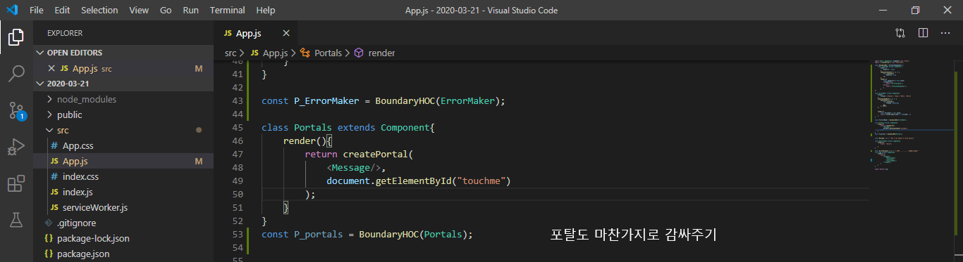 에러가 있을때 리액트 앱 전체 작동이 멈추는게 아니라