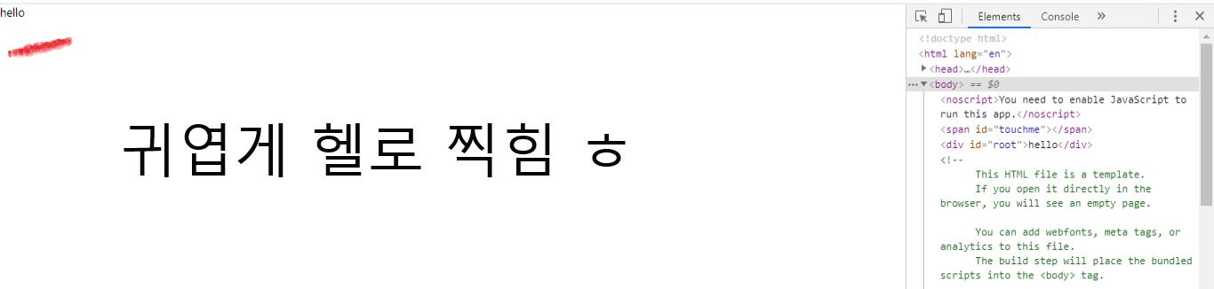 리턴타입 클래스에 렌더 리턴 헬로 찍고,