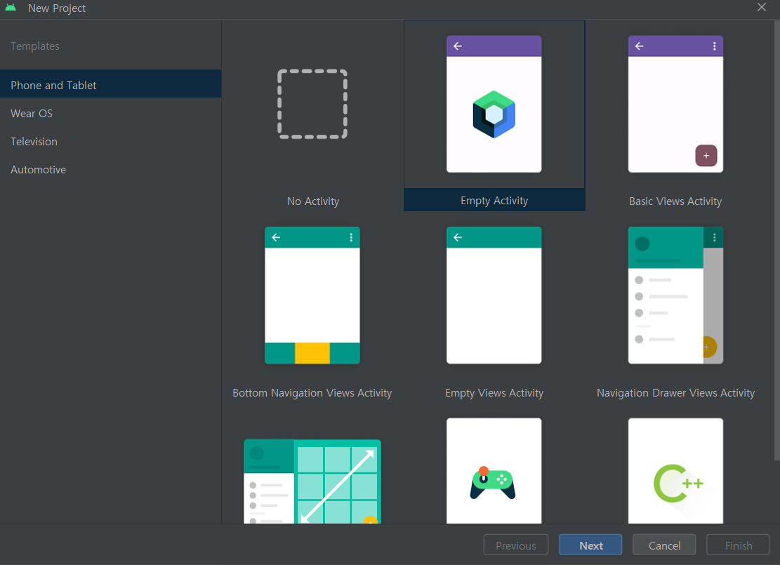 ์ผ๋จ ์๋๋ก์ด๋ ์คํ๋์ค๋ฅผ ์ด์ด์ฃผ์๊ณ Empty Activity๋ฅผ ๋๋ฌ์ฃผ์ธ์.
