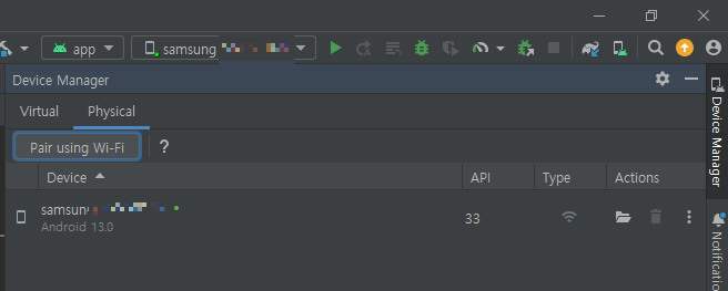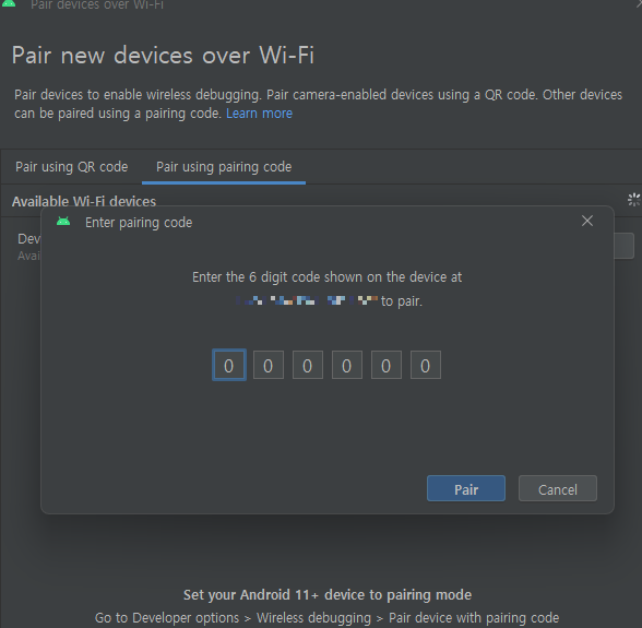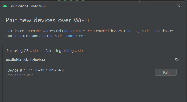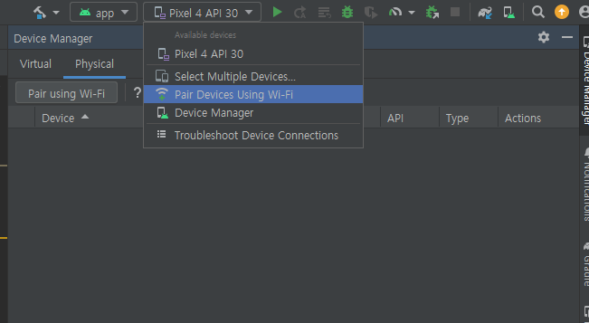Pair Devices Using wifi๋ฅผ ์ ํํด์ค๋๋ค.