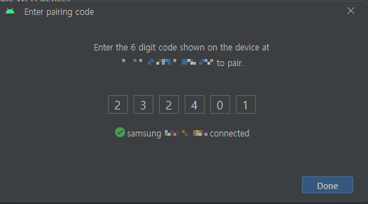 Done ๋ฒํผ์ ๋๋ฅด๋ฉด ํ์ด๋ง์ด ์๋ฃ๋๊ณ ์์๊ฐ์ด ๋๋ฐ์ด์ค๊ฐ ์ฐ๊ฒฐ๋ ๋ชจ์ต์ ํ์ธํ์ค ์ ์์ด์.